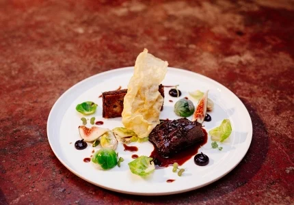 Miniature mature cheddar-cheese scrolls, served warm with wild-garlic butter, are a memorable surprise addition to the meal. Because the menu is seasonal, dishes are highly subject to change. For mains, you may choose between dishes such as bonito served with bitter lemon curd, fondant potato and raw oyster, or tender flap steak atop cauliflower puree and crisp cavolo nero.